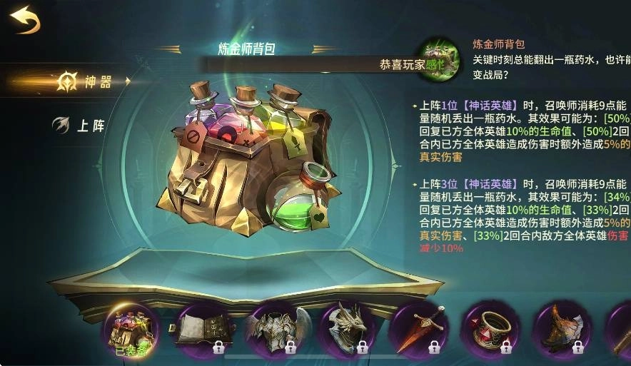 3、游戏内有数十种神器装备,它们就像是召唤师的战术技能库,涵盖了主动与被动效果,需要玩家依据阵容的特点来灵活进行搭配。