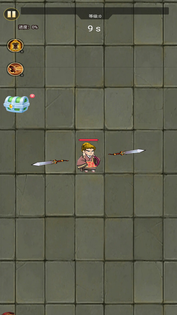 1、战斗环节紧张感拉满,玩家操控角色在网格布局的地图里移动,角色身旁围绕着飞刀之类的武器展开攻击。