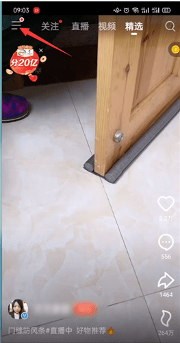2.打开抖音火山版,点击左上角三条横杆,
