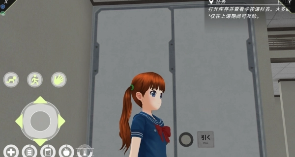 3、借助虚拟摇杆操控角色在校园内移动探索,靠近门时点击“a”或交互键就能开门。