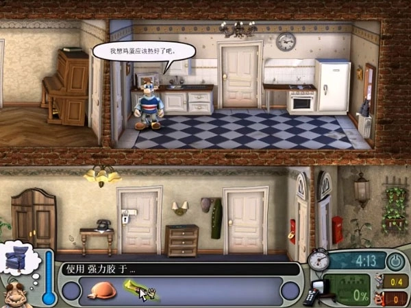玩家的目的就是整蛊旁边的邻居,并且不能被发现,整蛊次数越多,难度越大,所以越后面越要小心!在整蛊邻居1游戏在开始时,会有3关教学关,教导你如何使用物品,如何行走,如何整人,游戏在后继的关卡将有不同的难度,玩家尽可能利用房屋中隐藏的道具捉弄屋中的邻居,每个关卡根据不同的道具将会使得邻居引起不同的生气值,而游戏的目的就是让其发狂发飙。那你能成功完成这一目标吗?快来试试吧!