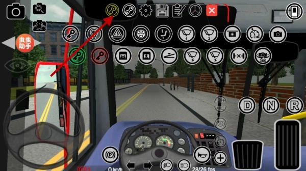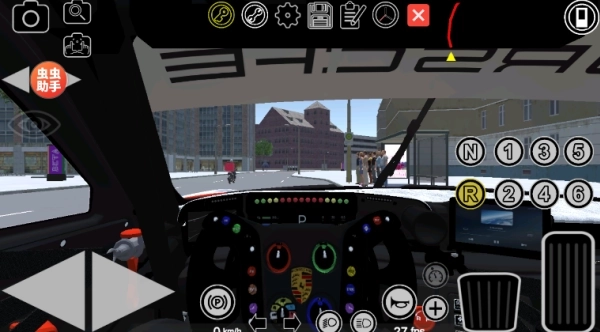 2、切换到第一人称视角后,要留意右侧虚拟按键区域的档位控制——D档负责车辆前进,N档属于空挡,R档是倒车档,只有恰当切换档位,才能实现平稳起步。