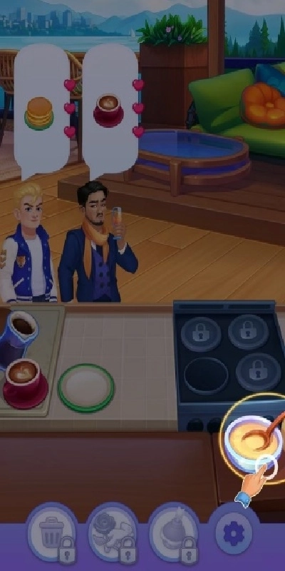 1、登录游戏后即可开启营业,静待顾客光临。建议优先处理制作耗时较长的菜品,之后再准备制作快捷的餐品。
