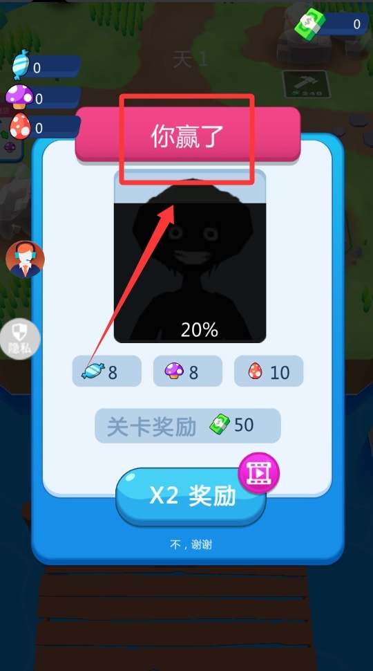 4、成功冲过终点线后,屏幕上会绽放出庆祝的烟花,还会显示“胜利”的字样,与此同时,新的蛋蛋皮肤会作为奖励解锁,点击屏幕就能继续挑战更高的难度。