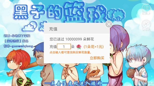 帝光的那些角色们都好可爱,我个人特别喜欢二黄,作者大大做得这么萌真的太合心意了!我刚玩这游戏没多久,发现用Q币充值鲜花居然行不通,不然我肯定早就送鲜花支持了~