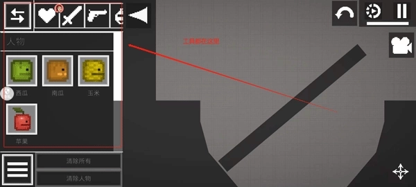 4、点击左上角的四宫格图标,就能立即调出道具轮盘,攻击型、辅助型以及环境改造型工具都能一键触达。