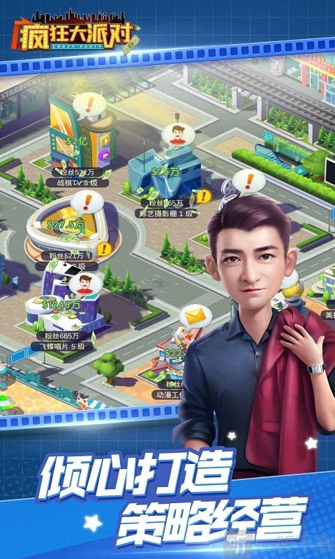 《疯狂大派对》是一款极易上手的游戏,核心玩法为模拟经营。游戏内的角色造型Q萌可爱,游玩过程十分考验玩家的思维灵活度。在影视圈的虚拟设定中,艺人若想立足生存,必须具备独特的专长;玩家需要挖掘并悉心培养艺人,助力他们逐步成长为娱乐圈里冉冉升起的新星。