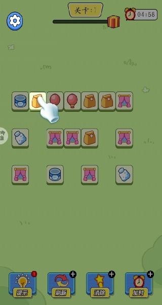 2、借助提示功能来获取配对相关的线索,使用加时道具可以延长闯关时长,以此应对卡关时的困境。