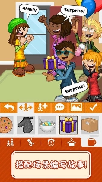 3、这是一个围绕美食展开的故事,玩家能够对角色、场景等进行自定义编辑。