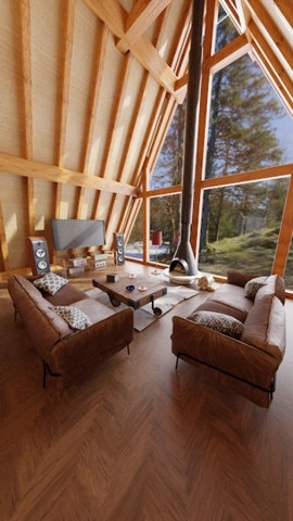 3.透过客厅的玻璃窗眺望外面连绵的群山,景致实在是美不胜收。能居住在这样的房子里,想必会十分惬意吧?