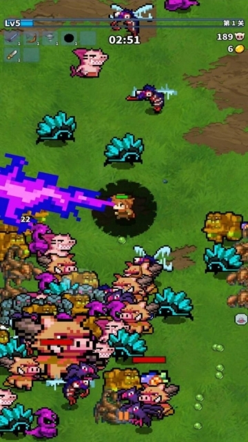 1、2D采用2D像素美术风格的割草类玩法,玩家将深入地下城,通过击杀各类怪物、挑战强大魔王来夺取丰厚财宝。