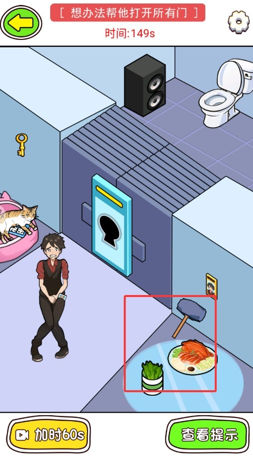 3、核心任务是协助主角打开门,只需把场景中的箱子、钥匙等物品拖动到恰当位置即可完成关卡。