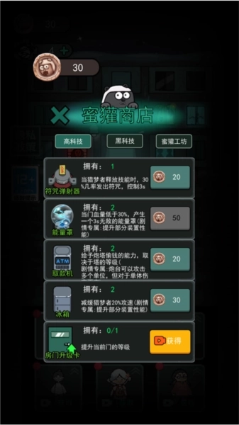 4、蜜獾商店:玩家在每次结束游戏的时候都可以获得一定的蜜獾币,点击右上角的蜜獾商店,在里面不断升级自己的属性,这样可以让玩家在下次游戏的时候可以获得额外的攻击以及防御属性,这样就可以轻松面对猛鬼的攻击了。