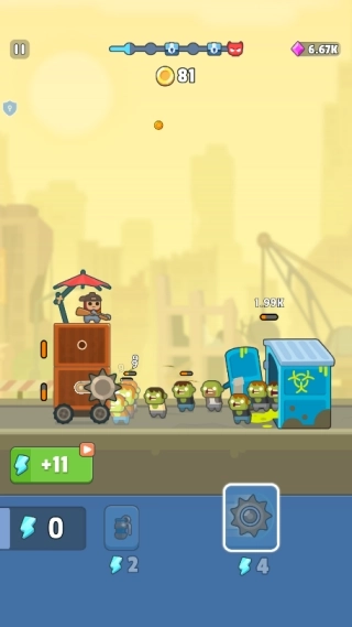 1、开局战车自动推图,击杀掉金币→现场买方块→边铺边打,塔防传统循环被塞进即时射击的肾上腺素,节奏快到飞起。