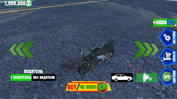 3、当然,除了汽车,你也能选摩托车。像图里展示的那样,点一下右下角就能选择摩托车,接着点击页面底部的【BUY】按钮,就能购买解锁并使用了。