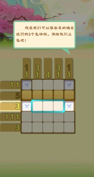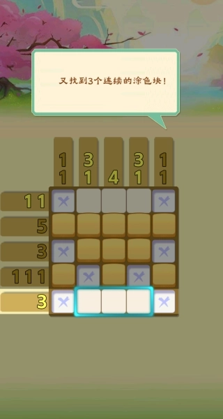 3、仔细观察画面中不同颜色的方块,当找到3个相同颜色的方块时,进行上色操作,积累解题经验。