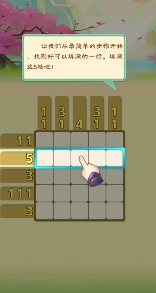 2、从简单关卡起步,点击手指提示的方块填写对应数字,按步骤推进,逐步掌握解题节奏。