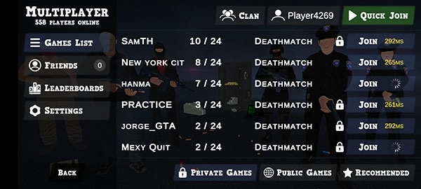 本作深度优化多人协同机制,支持实时语音+战术标记的联机作战模式。你可组建固定小队执行精密配合:如警察方分工实施封锁、狙击、强攻三重压制;强盗方则需协调掩护、爆破、撤离节奏。动态匹配与好友房双通道接入,大幅降低组队门槛,让策略协作真正成为胜负关键。