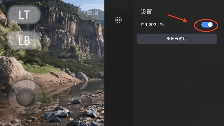 9.点击返回键,出现设置界面,点击“启用虚拟手柄”;
