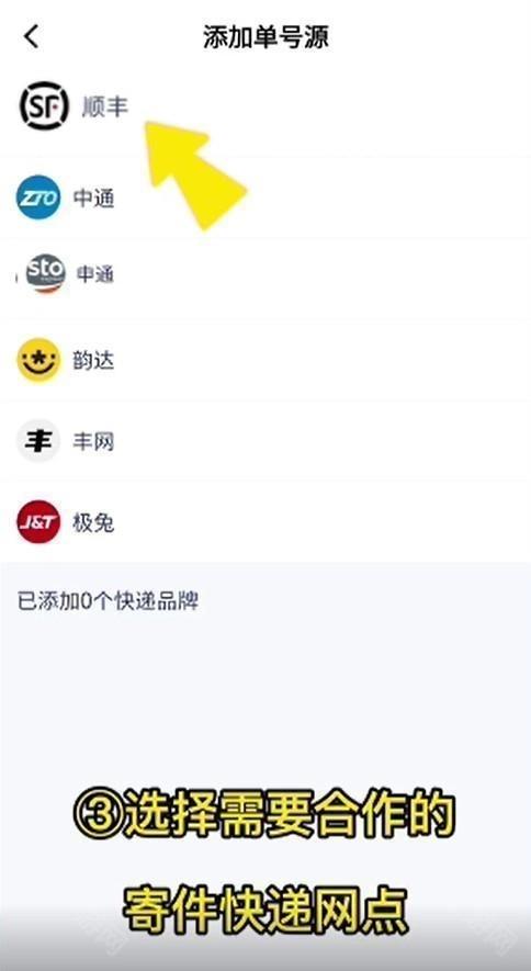 4、然后选择需要合作的寄件快递网点,开启授权。