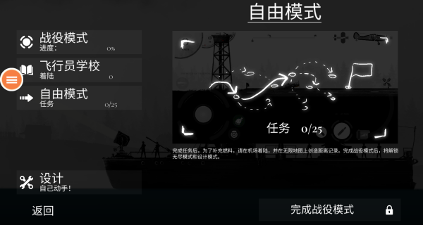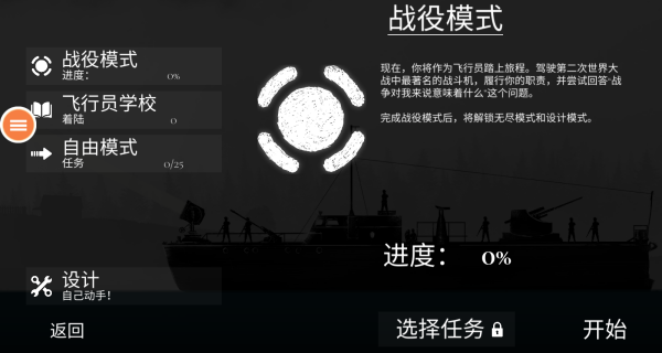 2、提供了三种不同的模式,分别是战役模式、飞行员学校和自由模式。