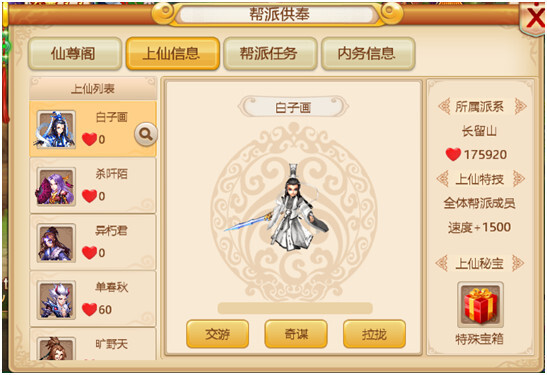拉拢:仅帮主/长老可点击,对上仙进行拉拢