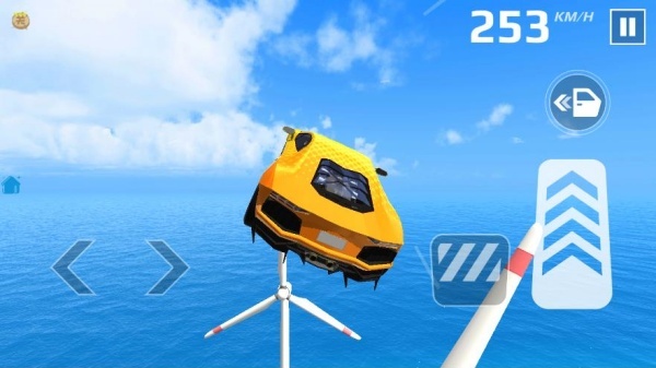 4、进行高空特技场景操作时,要留意速度表,通过方向键把控车辆平衡;碰到风力发电机这类障碍物,需提前调整行驶方向,同时借助加速键维持高速状态通过。