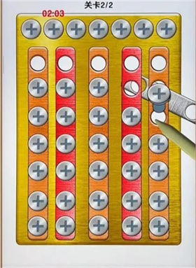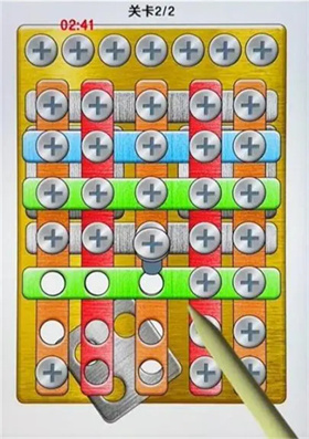 4、关卡越往后难度越高,得仔细观察钉子和金属板之间的关联,找出正确的拆除次序,这样才能顺利把板子拆下来。