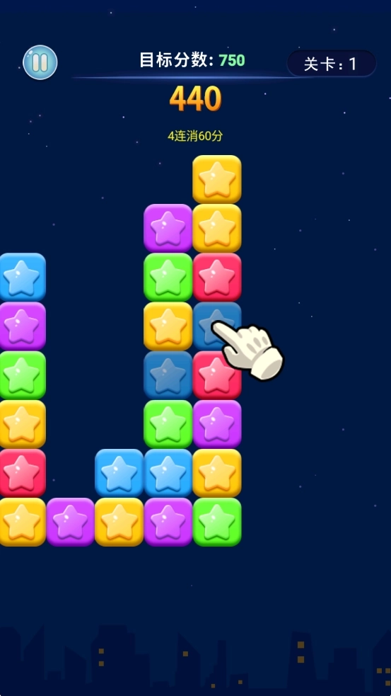 3、要留意规划星星的消除顺序,优先把挡路的星星清理掉,这样上面的星星就能落下来,创造出新的消除机会。