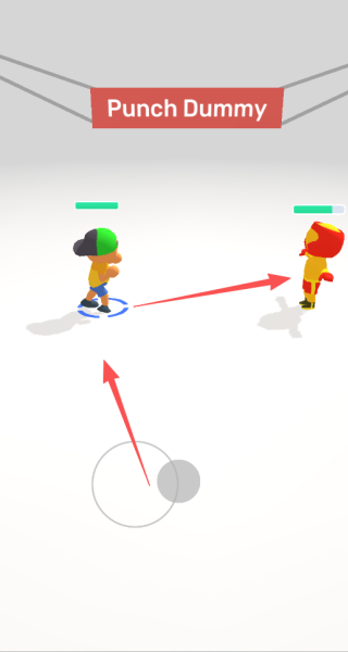 进入竞技场后,你可以滑动屏幕来操控布娃娃的移动,点击对应的按键就能触发拳击、踢腿、抓取之类的动作,最终目标是把对手从场地里摔出去。