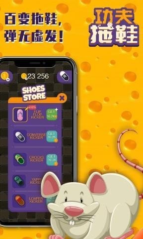 一款打老鼠的趣味游戏,玩家可以用各式各样的鞋子去拍击老鼠。游戏场景里分布着多个老鼠洞,你需要在洞口摆放奶酪之类的食物来吸引老鼠出洞,接着快速点击冒头的老鼠将其拍晕。要注意的是,可用的拖鞋数量是有限的,感兴趣的朋友不妨尝试一下。
