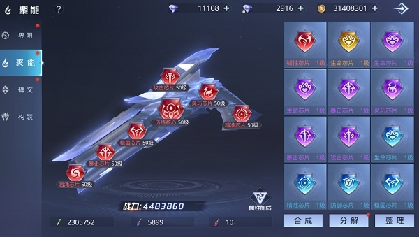 6、神谕幻想中的芯片分为单属性芯片与双属性芯片两类。聚能管、芯片助剂以及强芯片助剂都可用于芯片合成,其中双属性芯片的合成需要消耗芯片助剂以及两个单属性芯片。另外,合成后的芯片将返还其升级过程中所花费的聚能管。