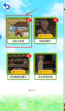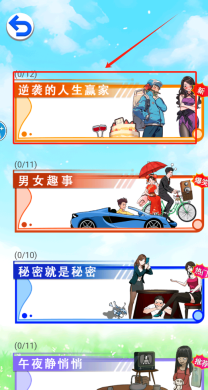 2、用手指向左滑动来浏览四张故事卡片,建议优先点击带有新标签标识的逆袭人生主题卡片。