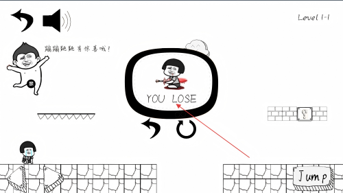 4、要是挑战没成功,可以重新开始,总结一下失误的地方,调整操作方式,努力去突破Level1-1关卡。