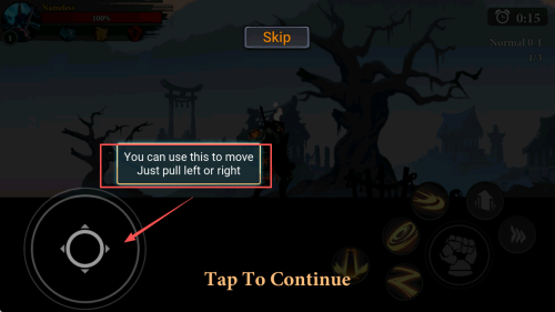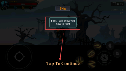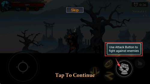 4、攻击操作:了解如何运用右下角的攻击按钮和敌人展开战斗,点击“Tap To Continue”即可继续教程。