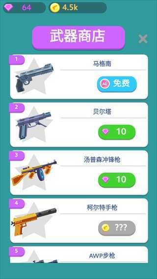 2、玩家可以在商城里选购所需的武器,去挑战各种不同类型的关卡。