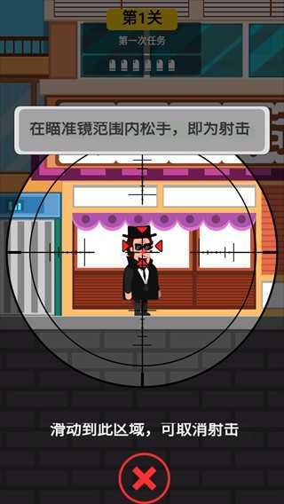 1、这款游戏的玩法十分简单,点击并长按屏幕就能进行狙击瞄准,当目标处于瞄准镜范围内时松开手指即可完成射击。