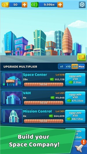 游戏里有80个太空项目等待完成,其中一部分是真实存在的任务,另一部分则是虚构的任务。玩家需要持续研发专属火箭去达成这些任务,以此获取金币。此外,你还能雇佣员工帮忙管理公司、增加收入,不放过任何可以赚钱的机会,努力成为最富有的人吧。