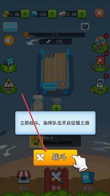 1、启动游戏后,点击界面上的【战斗】按钮,带领你的队伍踏上征服的征程。