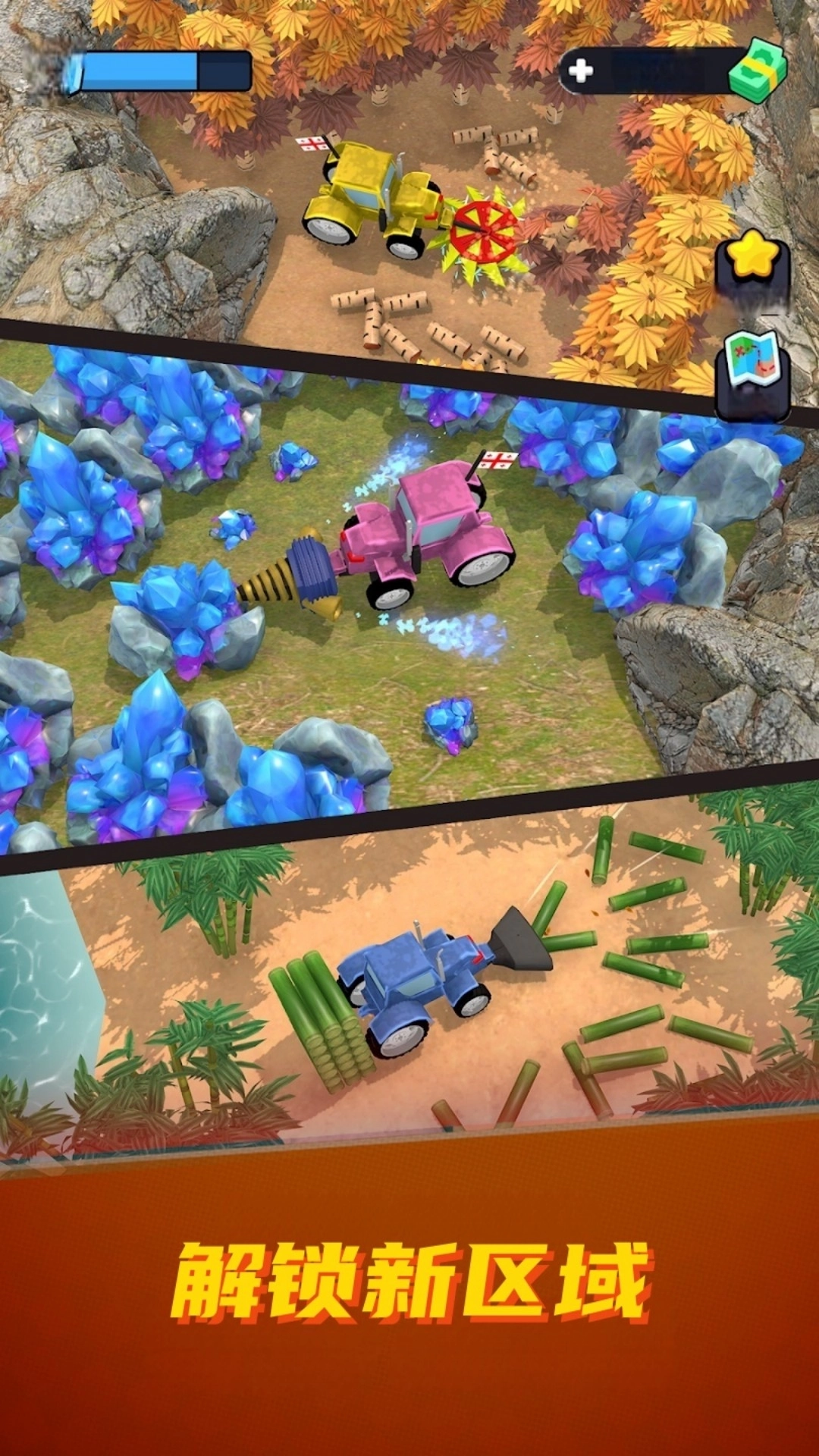 伐木人建房屋游戏是一款创意建造题材的模拟游戏,从零开始打造属于自己的家园,首先你要驾驶收割机,在森林中寻找合适的地方进行收集木头的工作,然后就是运输到指定的位置,接着就是扩建地图,寻找建造房屋的地方,开始建立完美世界。