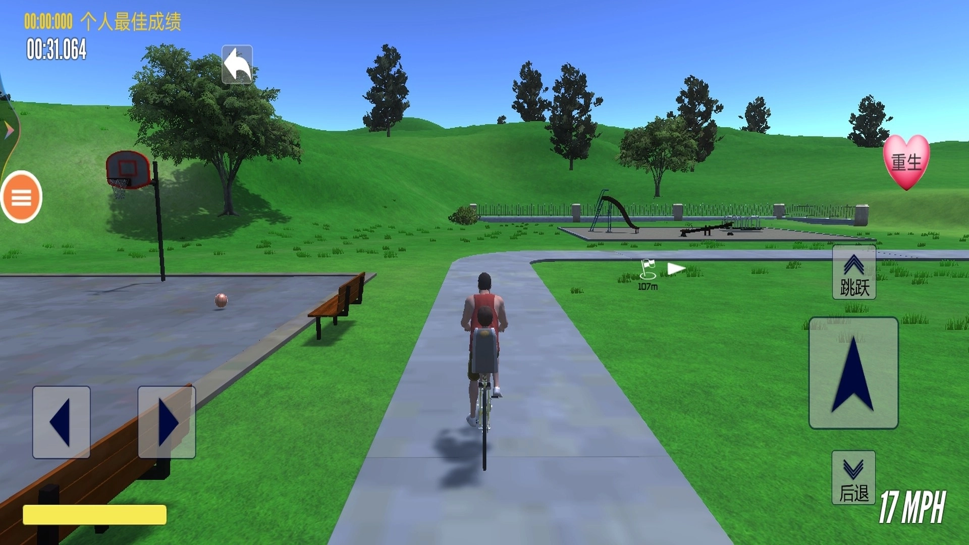 2、点击屏幕可使自行车完成跳跃动作,以此越过低矮的栏杆或者路面上的水坑。