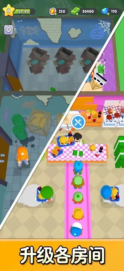 旅社大改造游戏是一款模拟经营旅社的趣味游戏,玩家将化身成为旅社的老板,现在你需要拿出一笔资金来改造装修旅社哦,不管是客房还是厨房,都需要你进行装修升级哦,解锁更多风格的家具,全部进行替换,让你的旅社看上去焕然一新,这样才能吸引更多人入住哦。
