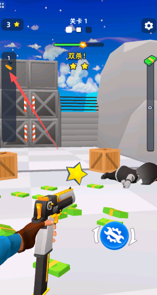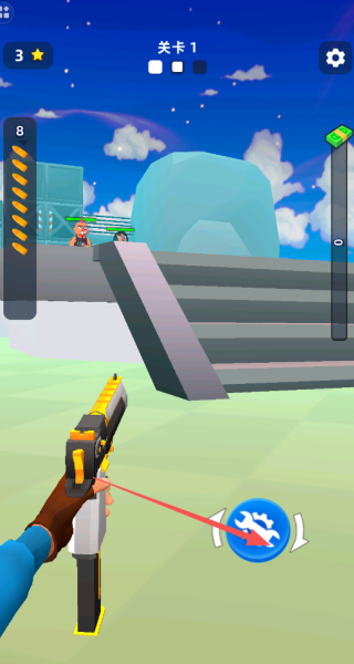 1、进入关卡1后,先瞄准目标,接着点击屏幕即可自动射击。