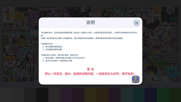 2、阅读完说明后,玩家可以从下方的颜色区域中选择自己想使用的涂鸦颜色。