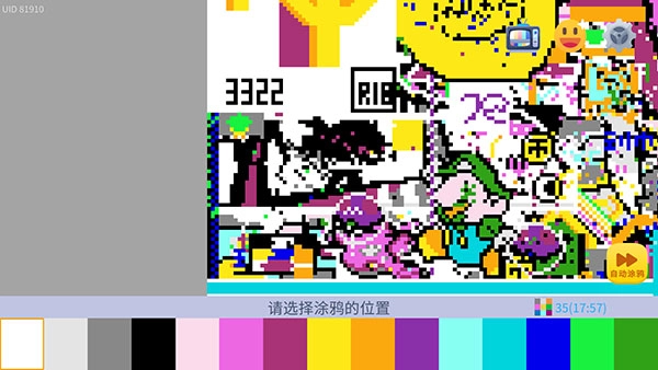 4、一旦找到合适的区域,可以放大画布开始作画。每次涂鸦以像素方格为单位,每填充一个格子将消耗一点涂鸦点,剩余的涂鸦点会显示在屏幕的右下角。