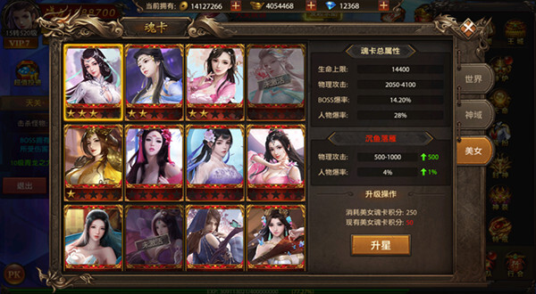 3、美女魂卡:新推出的美女魂卡可提升角色爆率,最高能达到100%!
