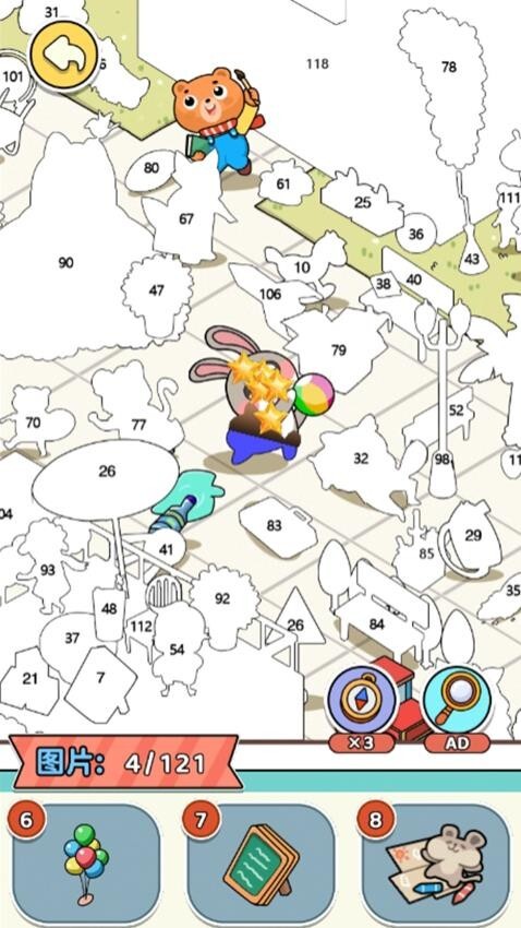 - 基础道具使用时机:初始解锁的“放大镜道具”(每关默认2个),用于找不到物品时点击使用,会短暂高亮一个未找到的目标物品;“刷新道具”可重置当前未找到的物品位置(适合物品被严重遮挡时)。道具不要随意使用,优先留到倒计时不足或卡关时使用。