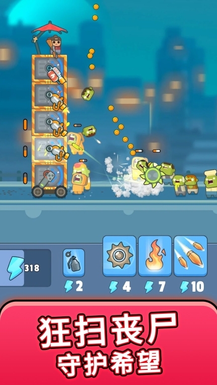 3、《勇者特战队》属于塔防类型的生存游戏。在游戏里,玩家得在一连串遭受丧尸入侵的场景中存活下去。