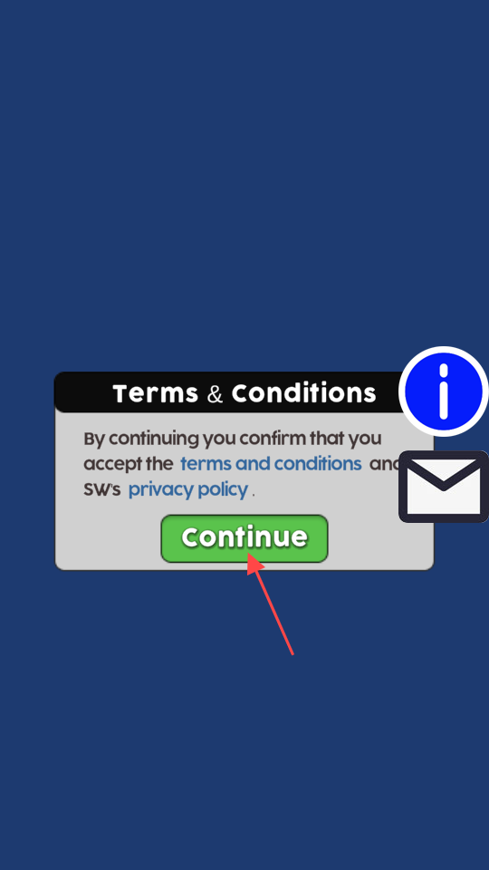 1、启动游戏后首先会出现条款界面,点击绿色的Continue按钮,确认同意条款与隐私政策,就能进入游戏主页面。