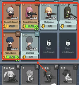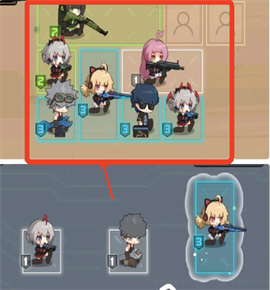 1、玩家能够依据角色的技能特性与武器特点,巧妙地在网格区域布置角色,以发挥出最佳的战斗效果。